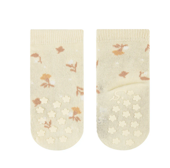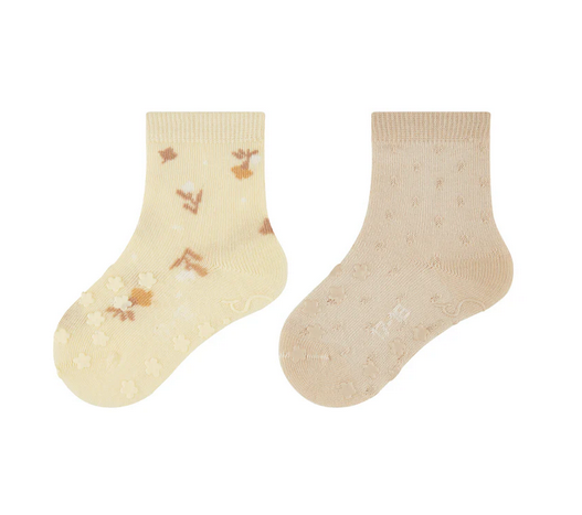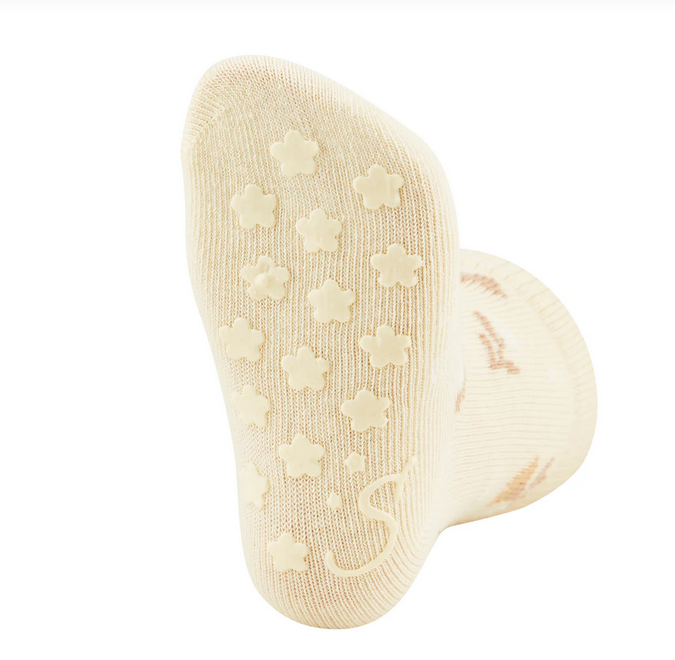 com flor e padrão texturado elevado teor de algodão: fibra de origem natural, macia, amiga da pele, respirável, com boa absorção da humidade e fácil de cuidar prático pack de 2 com diferentes designs a aplicação ABS (revestimento em borracha) no peito do pé e na sola oferece maior estabilidade em superfícies lisas a aplicação ABS é feita em silicone e foi testada e certificada segundo a norma OEKO-TEX Standard 100