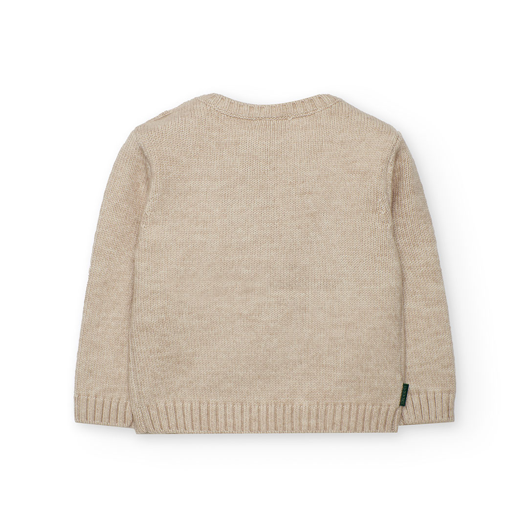 Camisola de malha em cor bege vigoré para menina, ideal para a temporada de outono e inverno. Confeccionada com um tecido suave que proporciona calor e conforto, é perfeita para os dias mais frios. O seu design inclui uma gola redonda e mangas compridas, assegurando um ajuste confortável e acolhedor. A cor bege facilita a sua combinação com saias, calças e leggings. Disponível em tamanhos desde 12 meses até aos 6 anos, esta peça é imprescindível para adicionar um toque de elegância e ternura ao vestuário infantil.