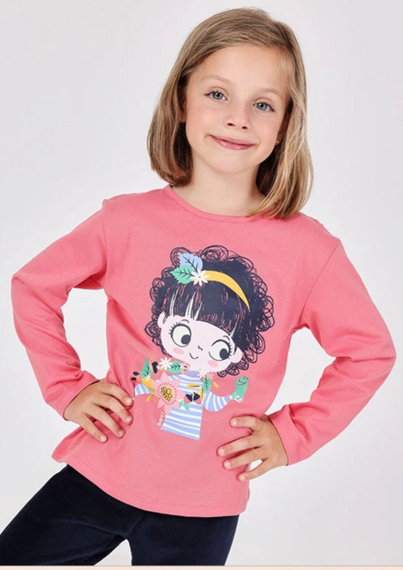 T-shirt de algodão rosa para menina, perfeita para os mais pequenos que procuram conforto e estilo. Feita de um tecido extra suave, é ideal para uso diário no outono e inverno. Uma estampa divertida adiciona um toque de alegria ao guarda-roupa infantil. O seu design com gola redonda e mangas compridas proporciona proteção adicional contra o frio. Disponível em tamanhos de 12 meses a 10 anos, combina facilmente com jeans ou leggings para um look encantador.