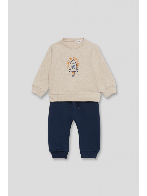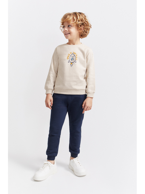 Conjunto de duas peças, sweatshirt e calças, para menino.
