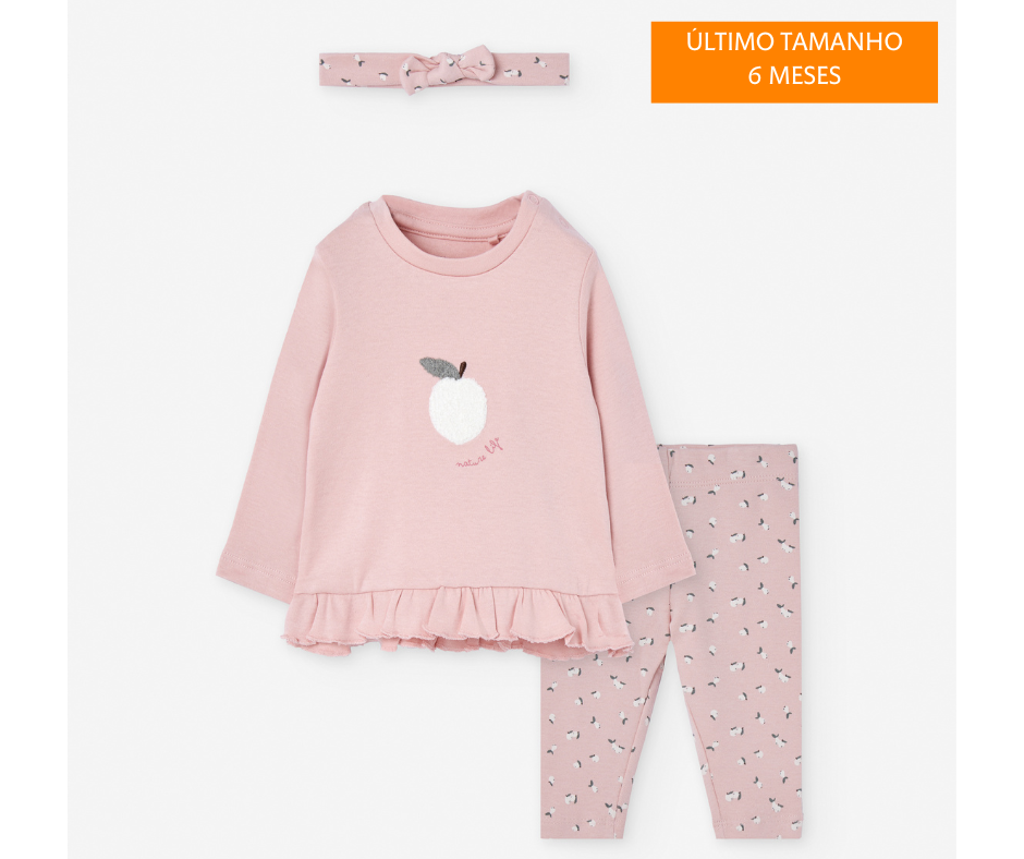 Conjunto composto por camisola, leggings e fita.