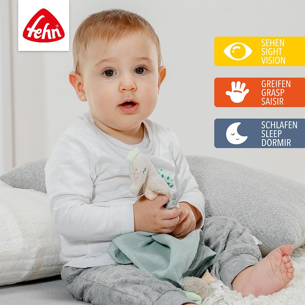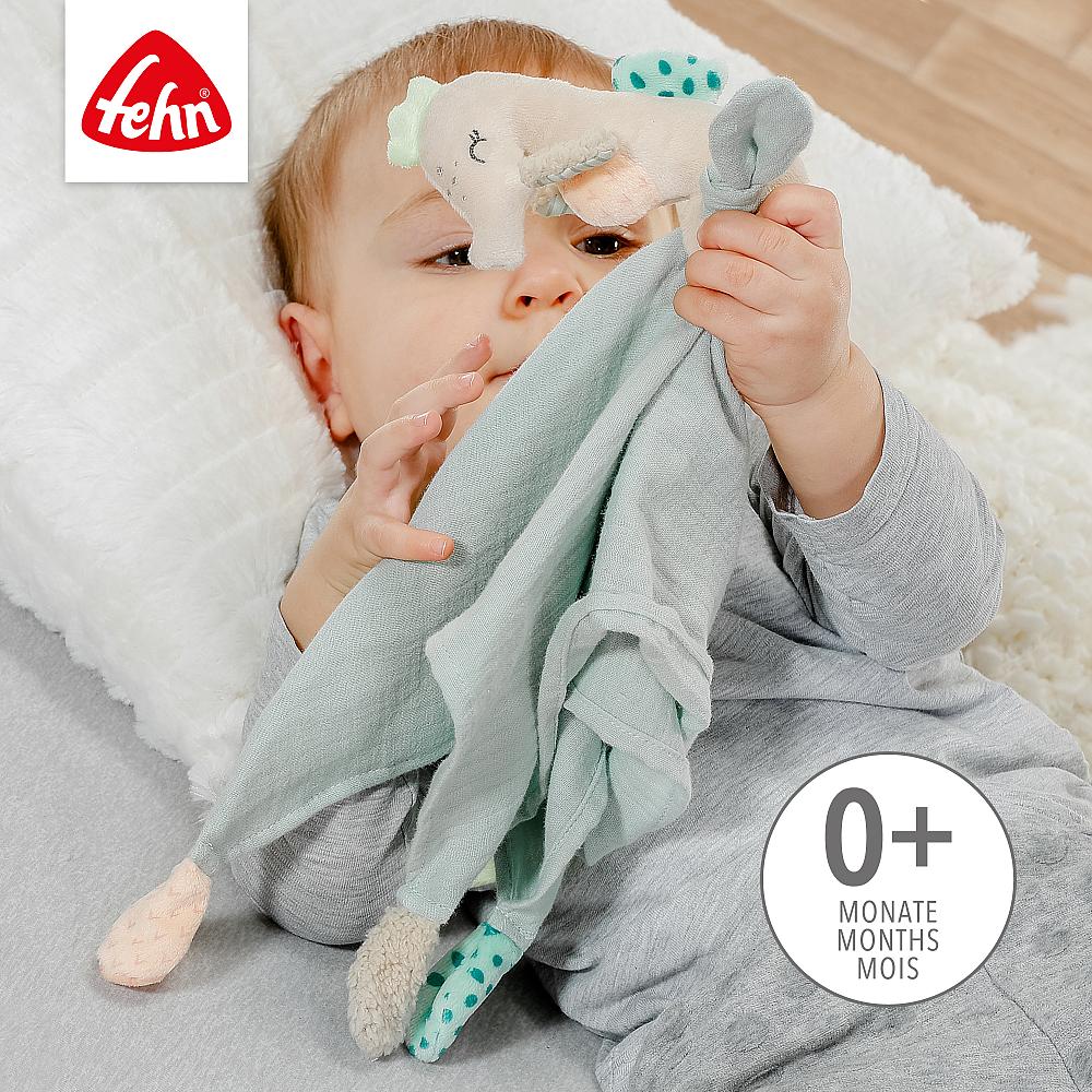 Companheiro de brincadeira, ajuda para adormecer e amigo de peluche, com pano de musselina de algodão e pequena figura para abraçar, agarrar e amar — para bebés e crianças 0+