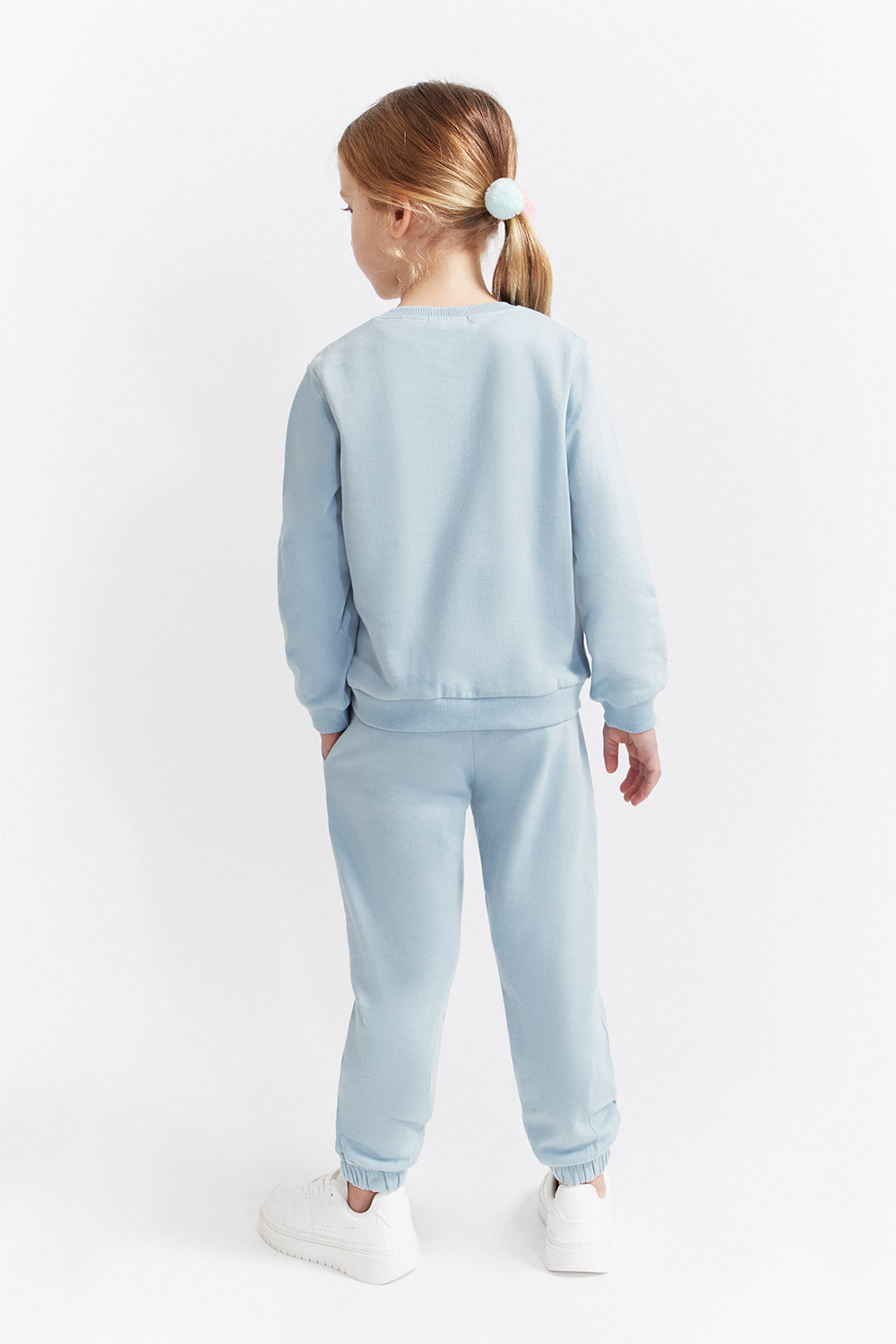 As calças a condizer têm cintura elástica e bainha com elástico tipo jogger, proporcionando liberdade de movimento e maior suporte.