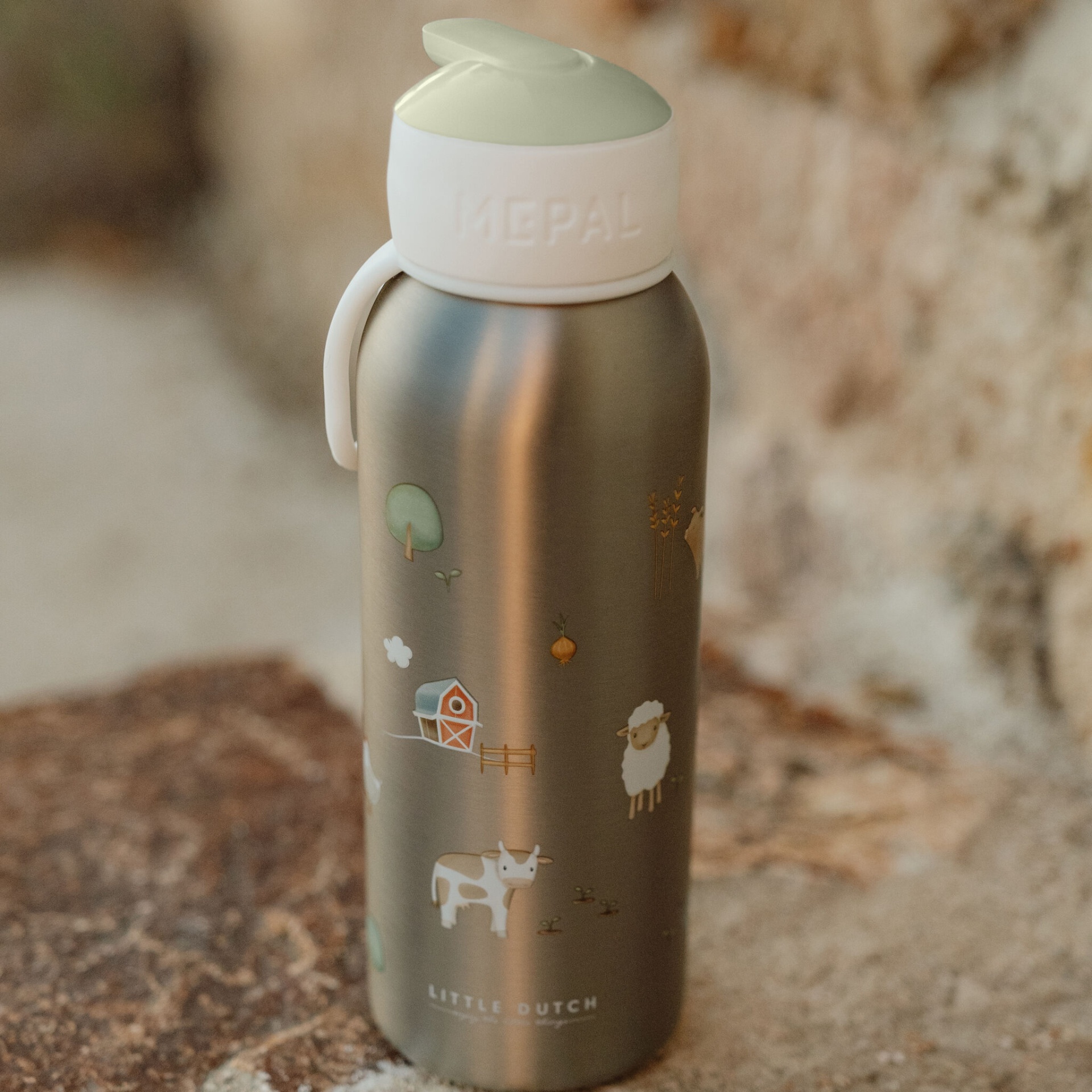 Quente ou frio? A garrafa isoladora Mepal Little Farm feita de aço inoxidável de parede dupla garante que sua bebida permaneça quente por até 9 horas e fria por até 12 horas.
