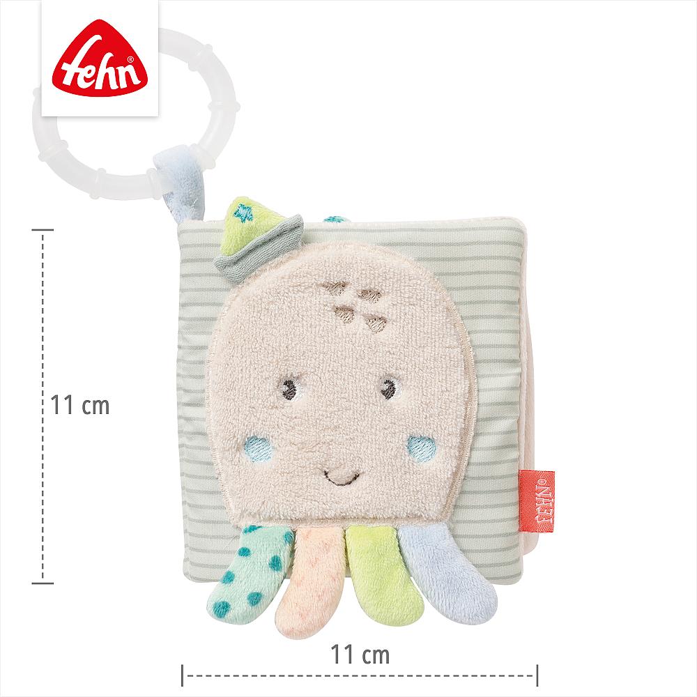 Com este livrinho, os bebés dão vida às criaturas do mar: motivos suaves e detalhes divertidos podem ser explorados, admirados e experimentados nas 8 páginas. Companheiros fofinhos: o adorável polvo, a doce anémona, o cavalinho-do-mar e o peixinho convidam o bebé a descobrir, investigar e sentir. Apito, papel crepitante e um pequeno espelho arrancam sorrisos, promovem as primeiras preensões, o sentido do tato e treinam o autorreconhecimento. O anel de fixação do livrinho permite prendê-lo facilmente e em segurança ao assento do bebé, carrinho, berço ou no carro.