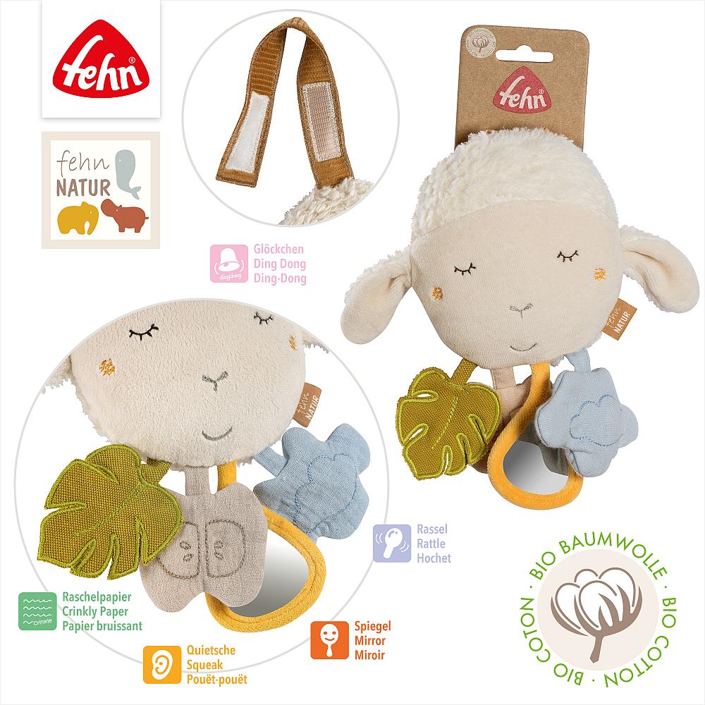 COMPANHEIRA LEAL — A ovelhinha fofinha conquista logo o coração dos bebés: os pequenos exploradores rapidamente descobrem como fazê-la tocar, chocalhar, chiar e crepitar — adequado desde o nascimento. DIVERSÃO E ENTRETENIMENTO — Suaves apontamentos de cor e vários pendentes convidam a brincar e explorar: a mistura de materiais permite treinar o tato e a preensão. ESTIMULA OS SENTIDOS — O bebé pode descobrir-se de forma lúdica no pequeno espelho e criar sons divertidos com os pendentes. DETALHES PRÁTICOS — Diversão em casa ou fora: graças ao prático fecho de velcro, o brinquedo sensorial fixa-se facilmente ao carrinho, assento/ovinho ou berço.