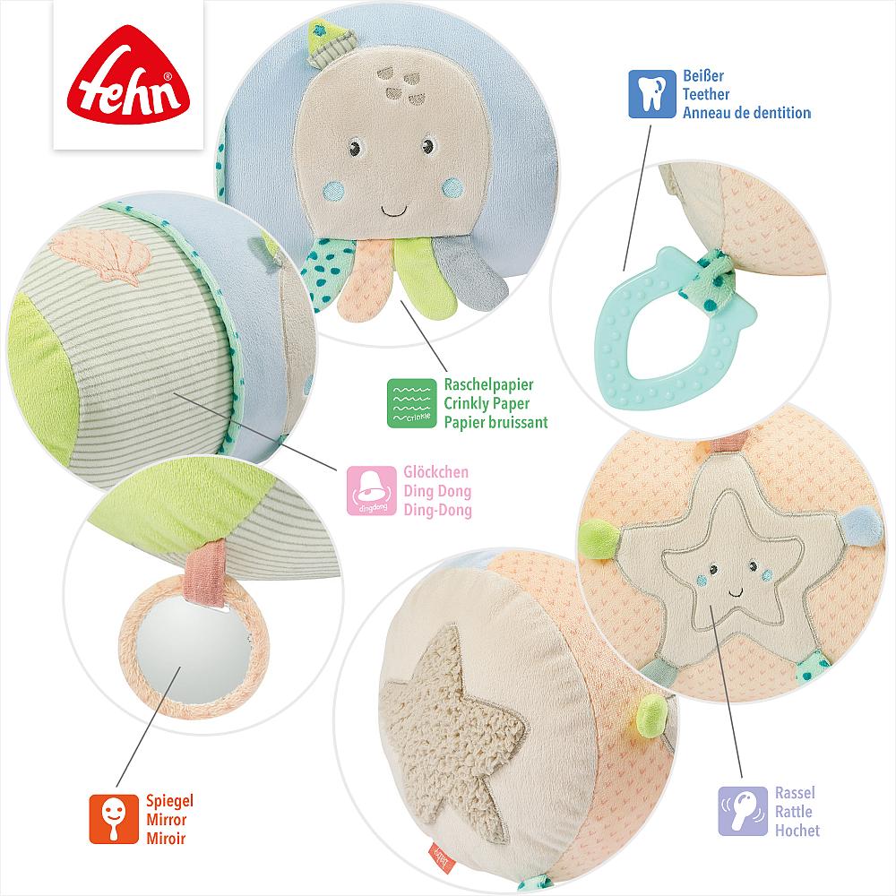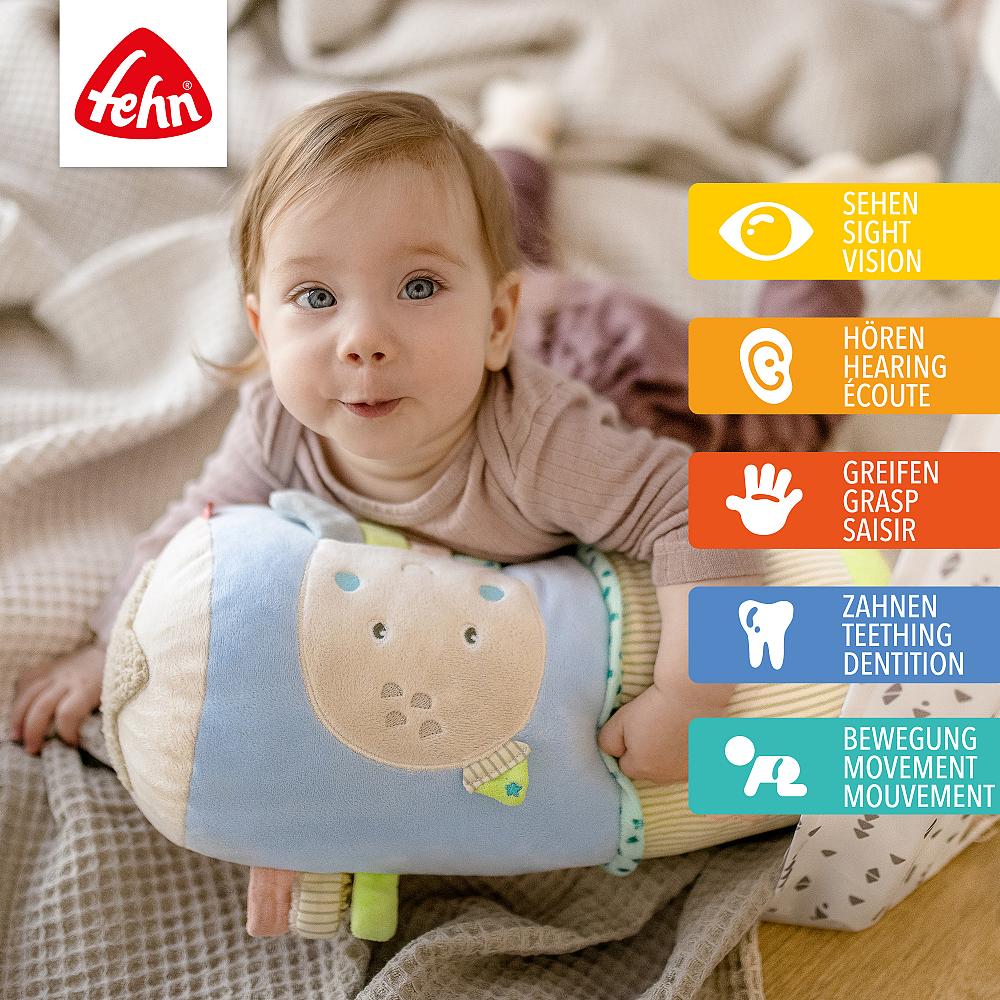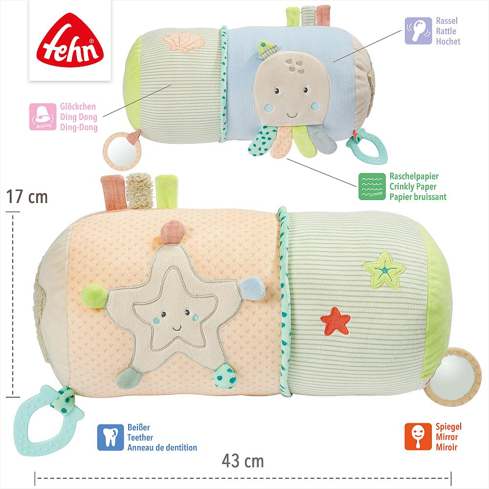 O rolo com design de animal marinho acompanha o bebé em cada etapa: ajuda nas primeiras tentativas de gatinhar e andar, e incentiva o jogo e a preensão. Aprendizagem através da brincadeira: chocalho, papel crepitante, “ding-dong”, espelho e mordedor suave garantem muita diversão enquanto explora e se movimenta com o rolo. Em casa ou fora, este rolo estimulante está sempre pronto: oferece muita variedade e rapidamente se torna indispensável! Este brinquedo educativo promove de forma lúdica os sentidos, a motricidade e a coordenação do bebé — ideal para oferecer no nascimento, batizado ou aniversário.